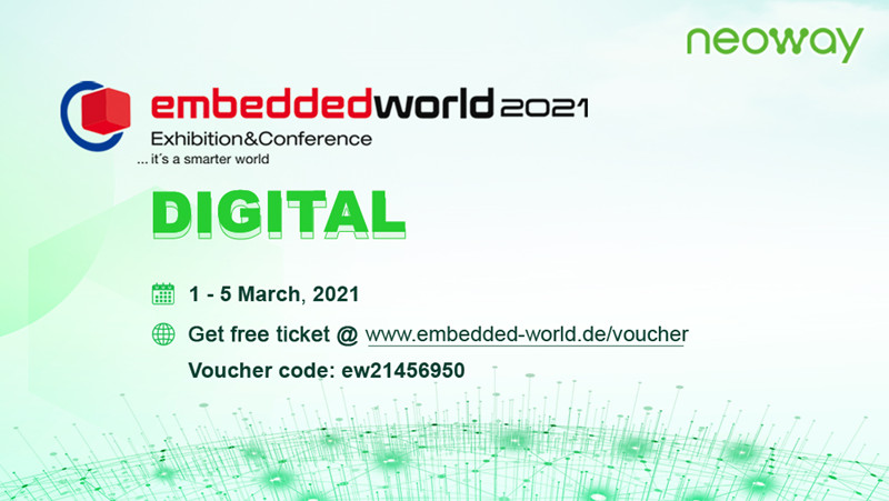 During the Embedded World exhibition, Neoway Technology will also regularly hold roundtable meetings to discuss with visitors about the related market and product topics, such as 5G, smart metering, fleet management, and asset tracking. In the next four days, Neoway Technology is looking forward to meeting you on the cloud. (For details about the exhibition website and invitation code, see the invitation letter.)