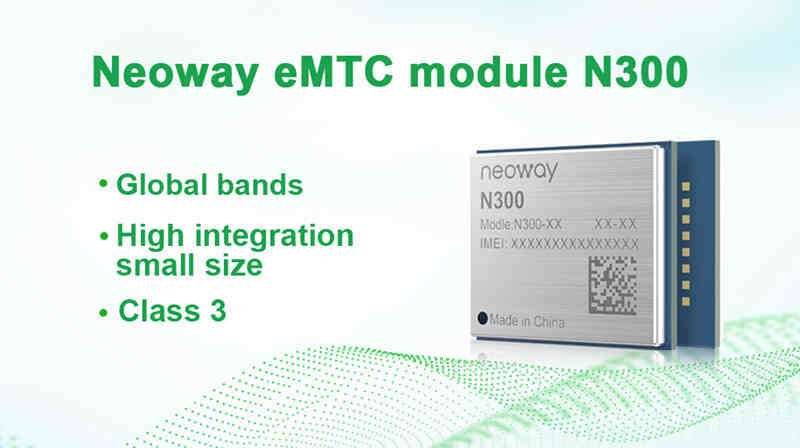 The newly released N300 series products of Neoway Technology are industrial-grade cellular modules, focusing on eMTC technology to meet global band coverage, and the full-band transmission power can reach PC3. N300 series products meet the application requirements of most low-to-medium-rate scenarios, and use higher transmission power to further expand coverage.